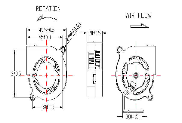 | 風(fēng)扇框體材料 | PA塑料UL94 V0 |