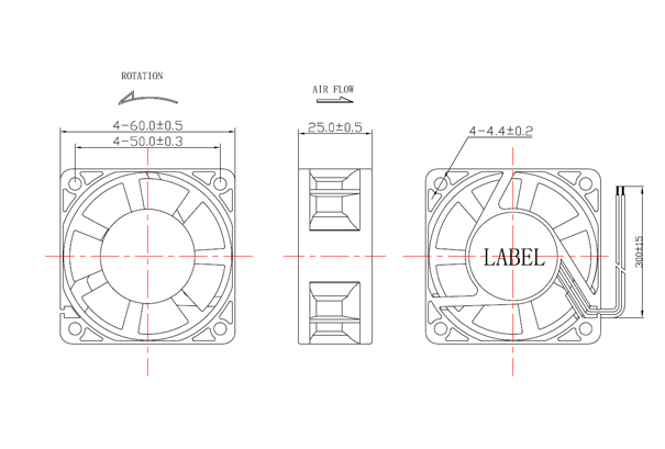 | 風(fēng)扇框體材料 | PA塑料UL94 V0 |